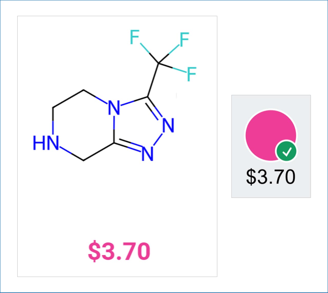 Click on the structure of a commercial compound to open its Molecule Card. If the compound is sourced from either the Sigma-Aldrich Core Catalog or the Building Blocks Explorer, you will find a direct link to the Sigma-Aldrich catalog. Alternatively, you can use the ‘Shop Now’ option to add it to your shopping cart.
