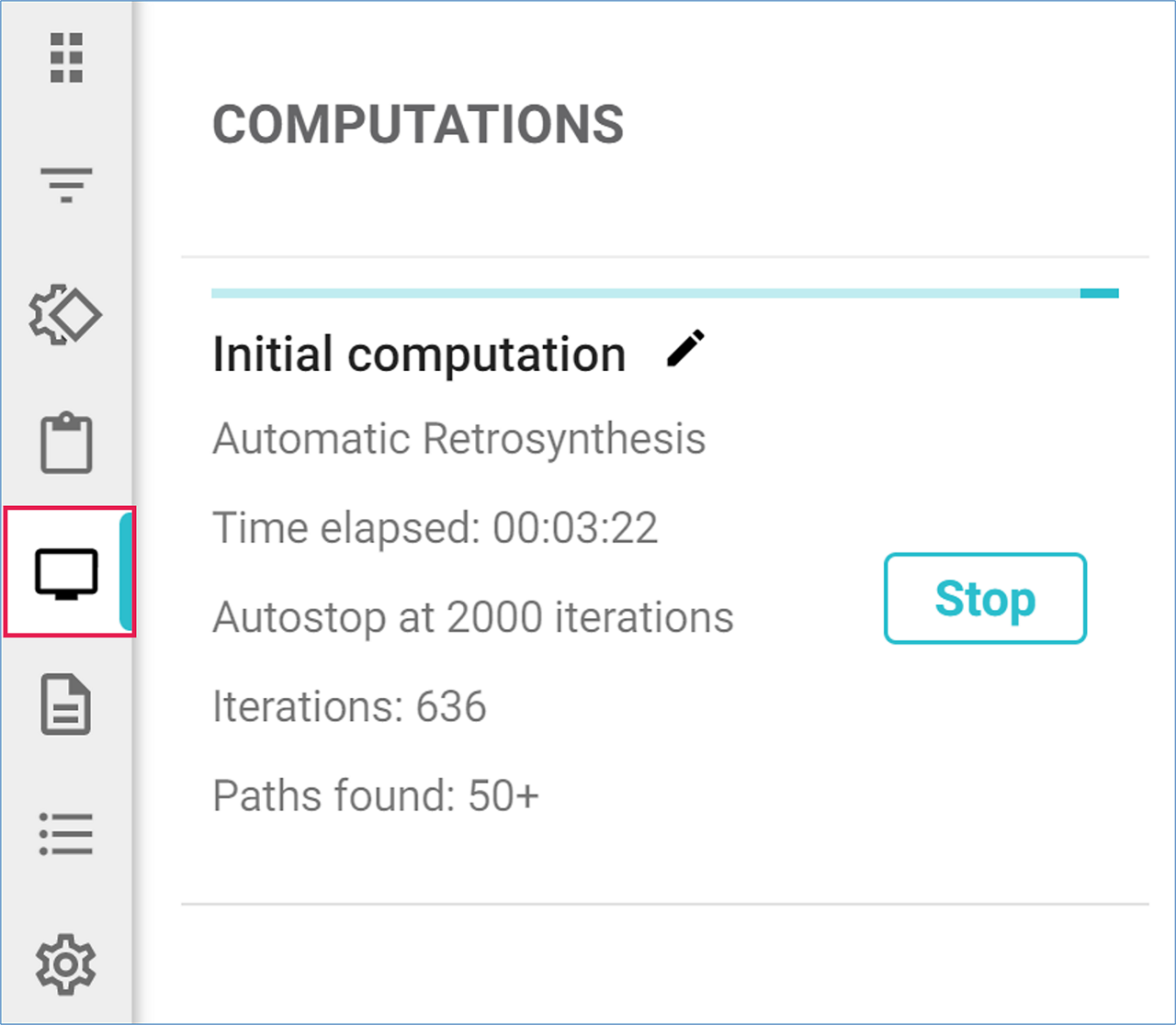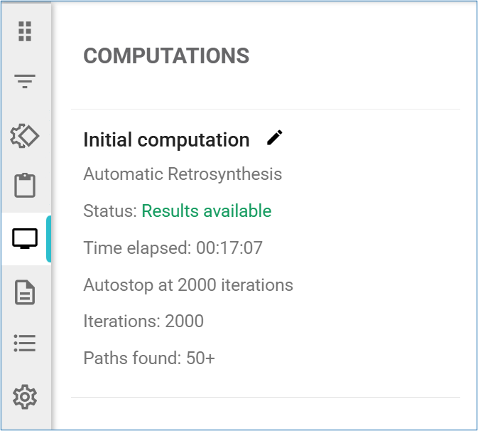 As soon as SYNTHIA™ identifies results, they will automatically load for analysis. If no results are available yet, you can easily check the status of your search by clicking on the Computations Tab