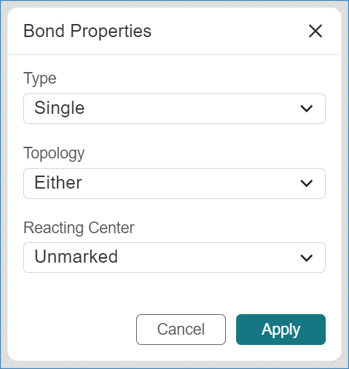 When the Selection Tool is active, double-click on any bond to open the Bond Properties Menu.