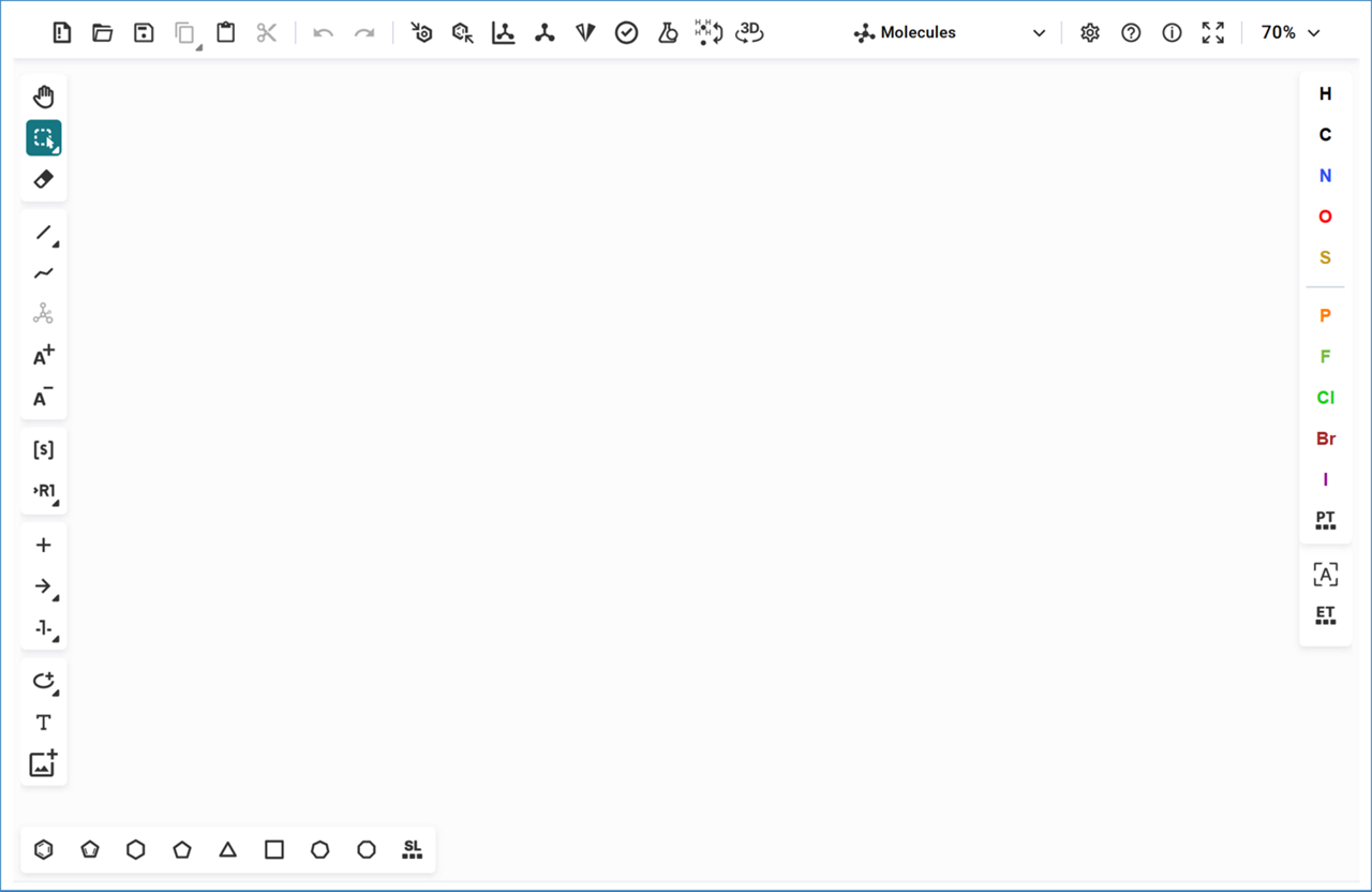 Our Molecule Editor, Ketcher, allows you to quickly draw structures using bond and atom tools.