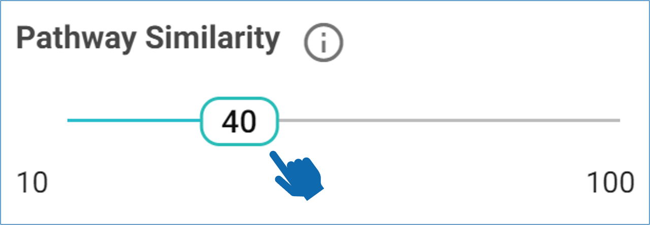 Adjusting the Pathway Similarity slider to a lower percentage will group pathways into similar families. When the slider is set at 100%, SYNTHIA™ will show all the pathways in the result set. When the slider is adjusted to a lower percentage, it will group pathways based on the percent similarity. For example, if you move the slider to 40%, only pathways that overlap by 40% of their reactions or less will be displayed.