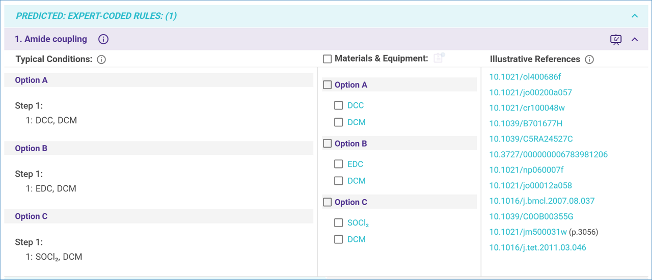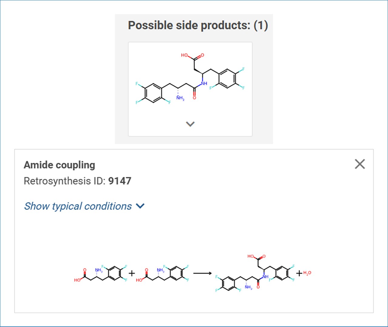 When the Reaction Card is open, Synthia queries the reaction rules to predict possible side reactions for the proposed reaction.