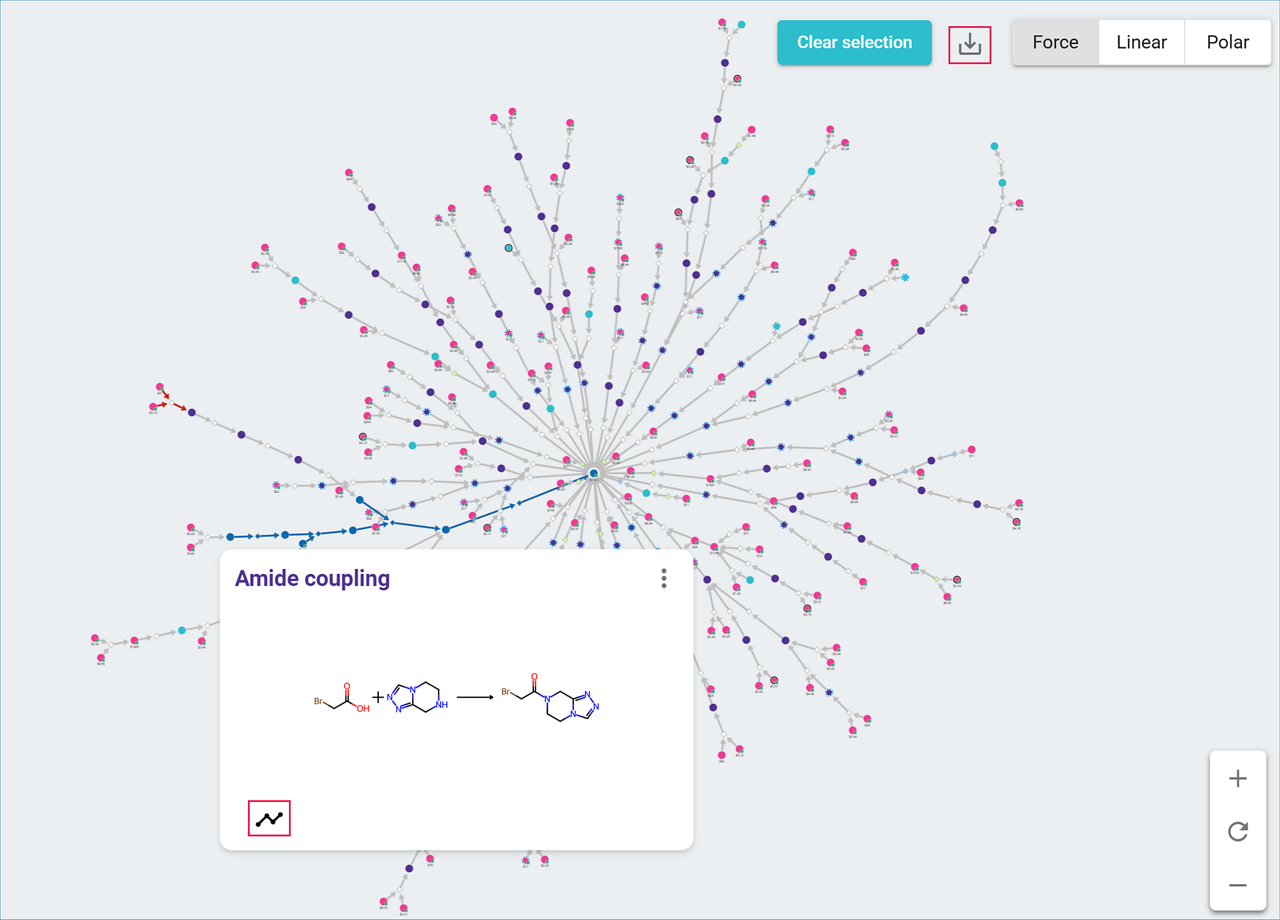 • Select the reactions you want to save by opening the reaction node furthest away from the target,