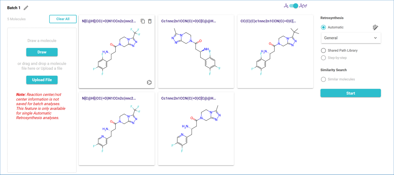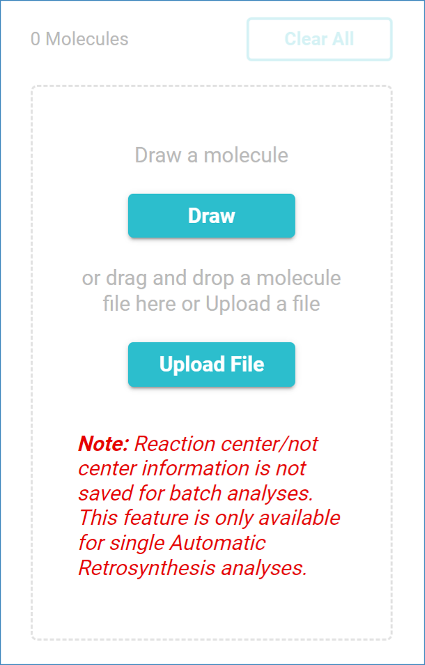 You can continue to add molecules to the existing list by uploading additional files or drawing extra target molecules until the maximum number of molecules allowed per analysis is reached.