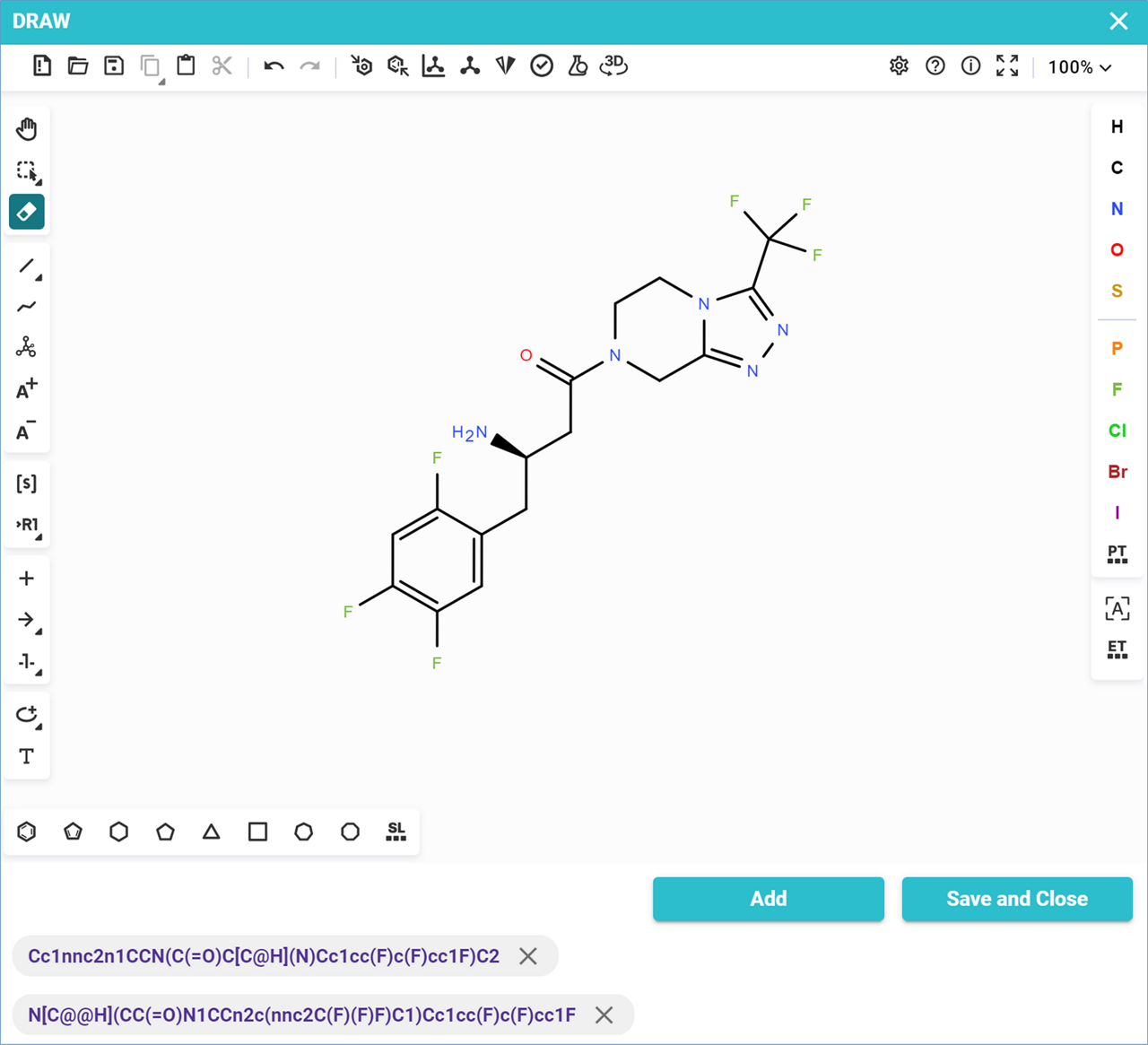 - Draw your target molecules in the editor, and click ‘Add to Batch’ or ‘Add’,