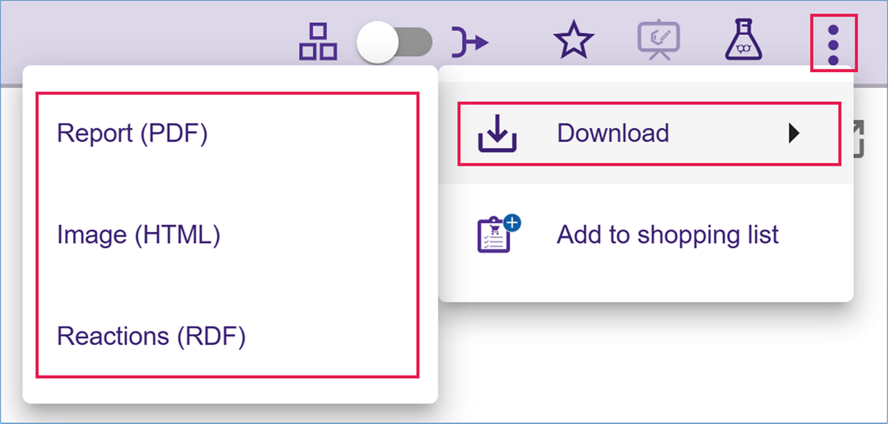 Open the three-dot menu and select ‘Add to shopping List’ to add the commercial compounds in the pathway to your shopping list.