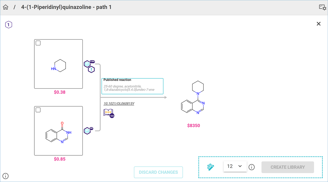 This opens the Diversity Library analysis setup page, where you can select the starting materials you would like to substitute, and personalize your search criteria.