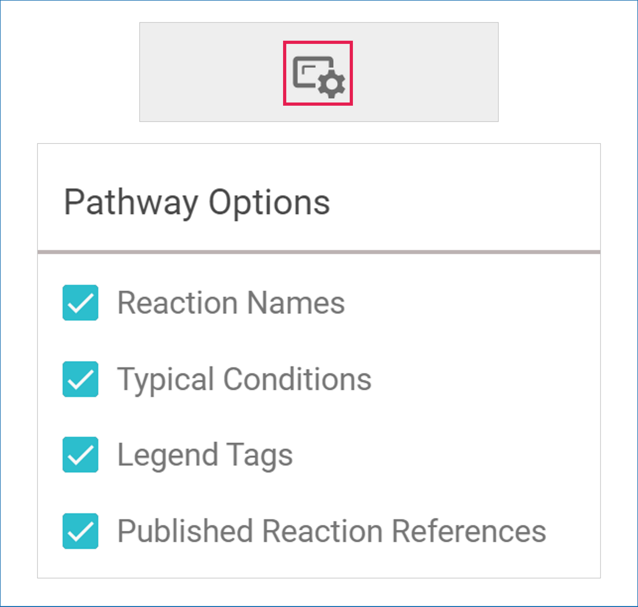In Expanded Path View, click on the Pathway Options icon to open a menu that allows you to select how much information you want to see displayed in your pathway. All the options are enabled by default.