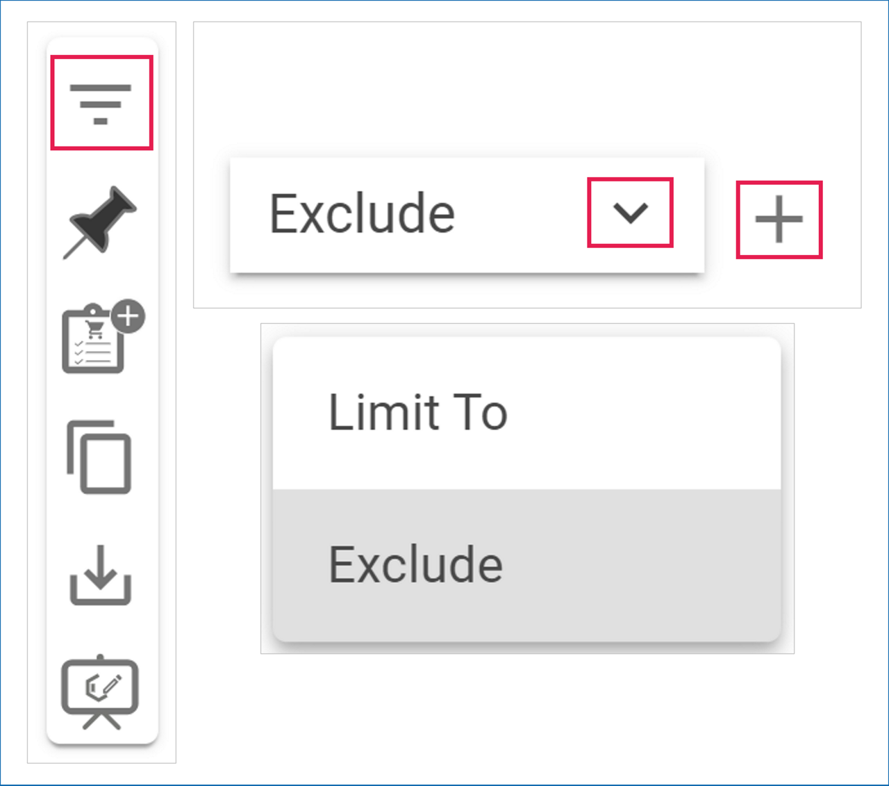 Click the ‘Filter’ icon to open a menu that allows you to filter the molecule out of the results (exclude) or view the selected molecule only (limit to).