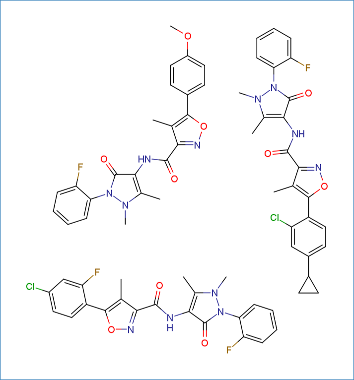 COc1ccc(-c2onc(C(=O)Nc3c(C)n(C)n(-c4ccccc4F)c3=O)c2C)cc1.Cc1c(C(=O)Nc2c(C)n(C)n(-c3ccccc3F)c2=O)noc1-c1ccc(C2CC2)cc1Cl.Cc1c(C(=O)Nc2c(C)n(C)n(-c3ccccc3F)c2=O)noc1-c1ccc(Cl)cc1F