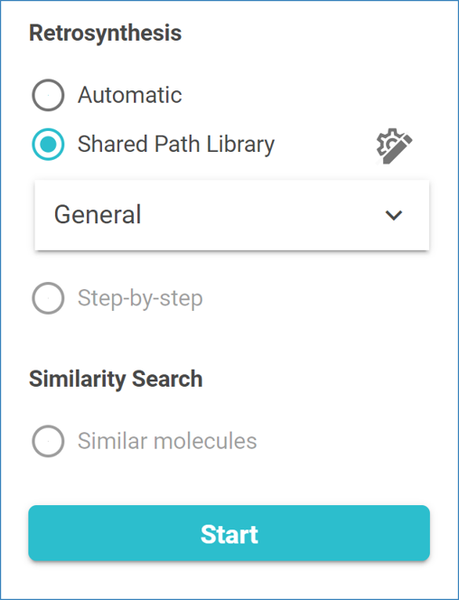 Shared Path Library analyses are conducted as concurrent Automatic Retrosynthesis analyses. As for any Automatic Retrosynthesis analysis, you can select a Saved Configuration that aligns with your molecules and specific needs. Saved Configurations are sets of saved analysis settings optimized for distinct purposes.