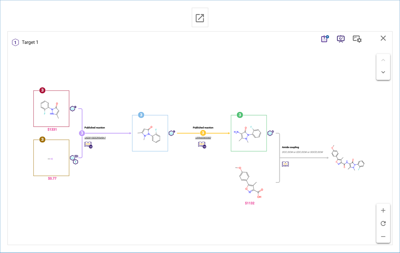 The ‘Shop Now’ icon allows you to add the commercial compounds in the pathway to your Shopping List. For instructions on setting up and using your Shopping List to select the commercial compounds you wish to purchase, please refer to the “Shopping List” section in the Analyses Dashboard User Guide.
