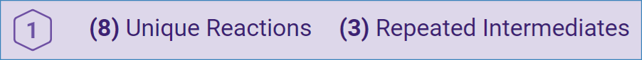 Each set is assigned a rank number, starting from 1, which can be found at the top of each set in the lavender header. Additionally, the number of unique reactions and repeated intermediates for all pathways in the set is displayed next to the set rank.