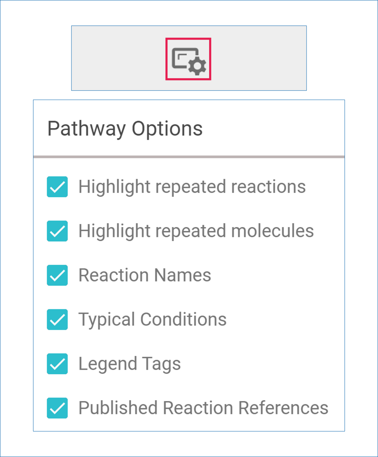 Click on the Pathway Options icon to open a menu that allows you to select the amount of information displayed in your pathway. All options are enabled by default.
