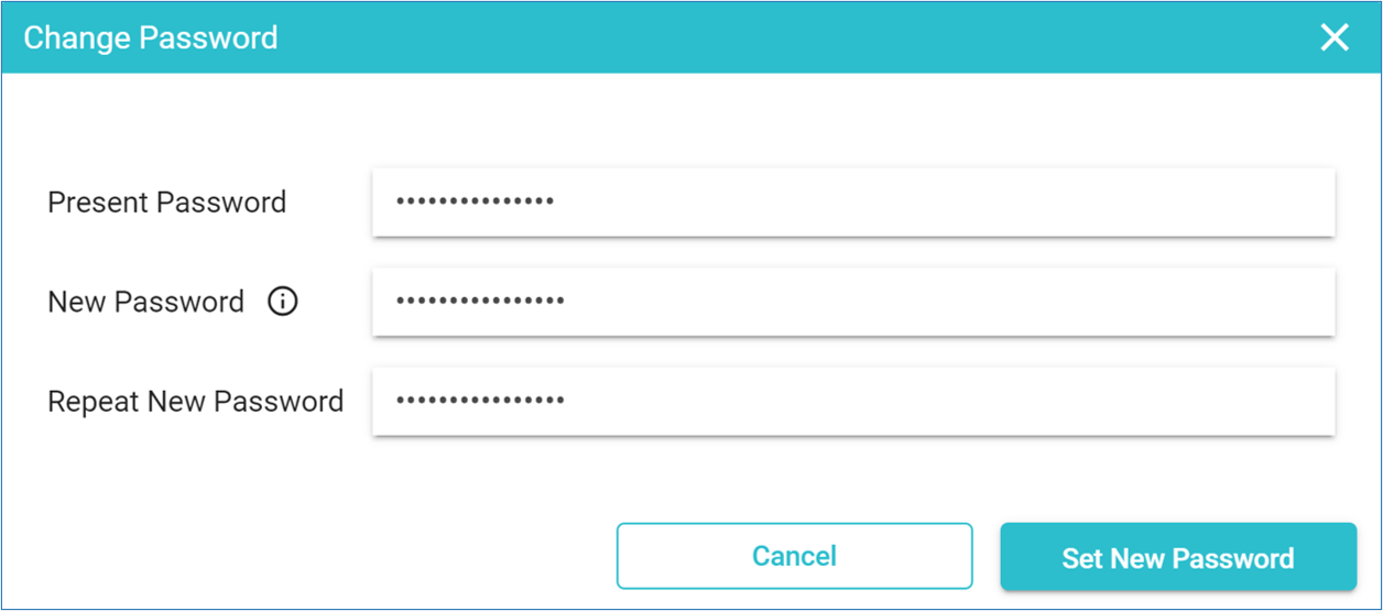 You will be prompted to enter your current password and to choose a new password. Passwords should have a minimum of 8 characters and contain at least one lower-case letter, one upper-case letter, one number and one special character (!@#$%^&*_). Confirm the new password and click ‘Set New Password’ to validate the change