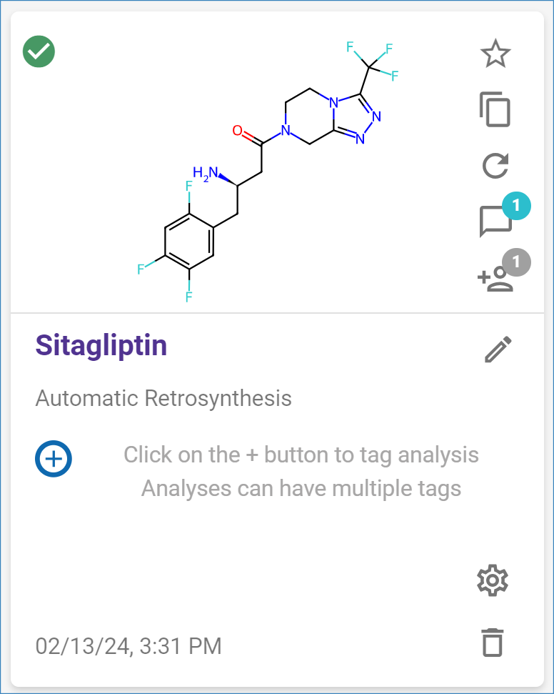 Click the ‘Rerun’ icon to run the analysis again. When rerunning an analysis, the target molecule(s) and search parameters will be the same as the ones selected for the original analysis. Once the Analysis Setup page opens, you may modify any structure or parameter before starting the search.