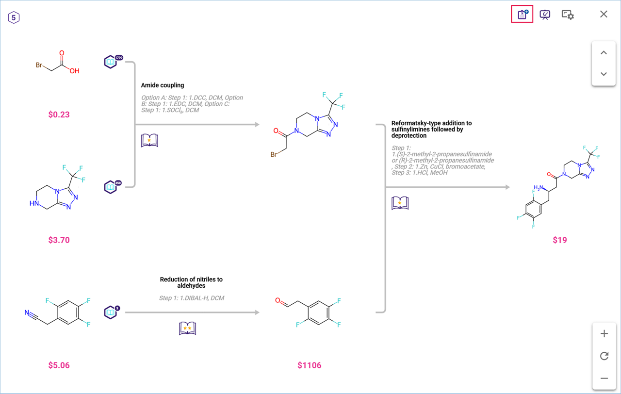 Open the three-dot menu and click on ‘Add to Shopping List’ to see catalog availability for all the commercial compounds included in the selected pathway.