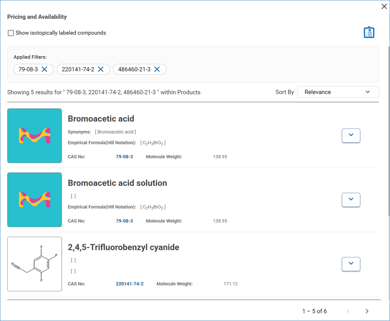 You can start building your Shopping List by selecting commercial compounds directly from your analysis results.