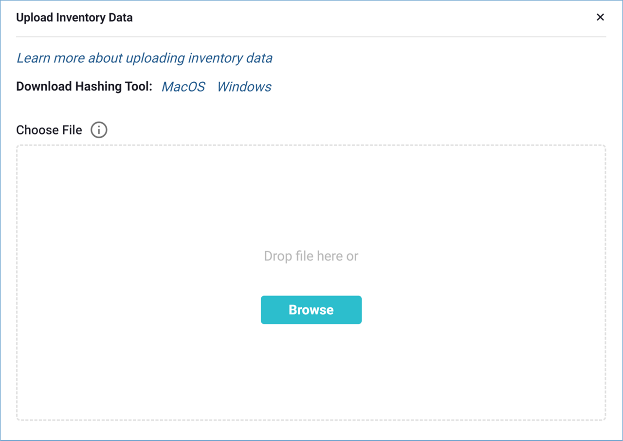 - Click ‘BROWSE’ to retrieve your hashed inventory file