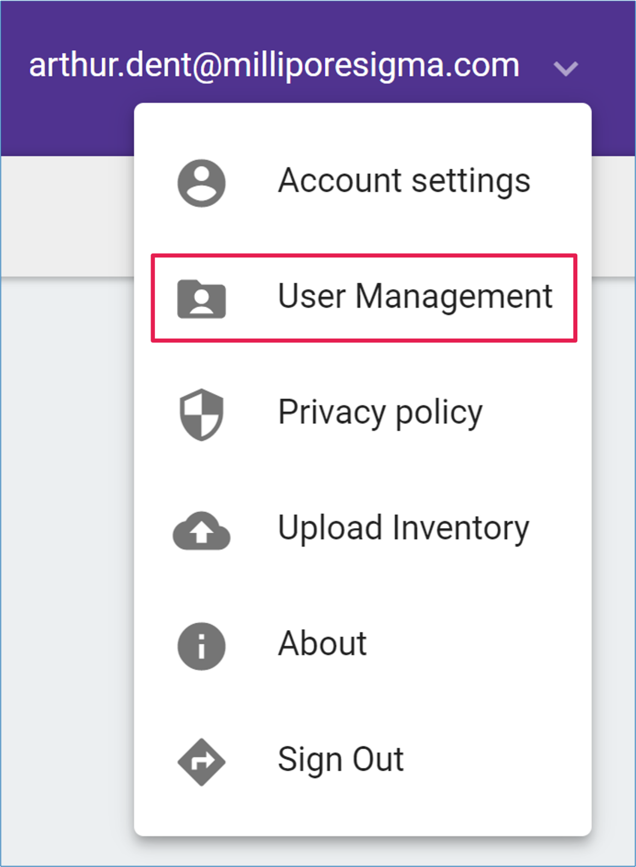 Click on your username to open your account menu, and click on ‘User Management’.