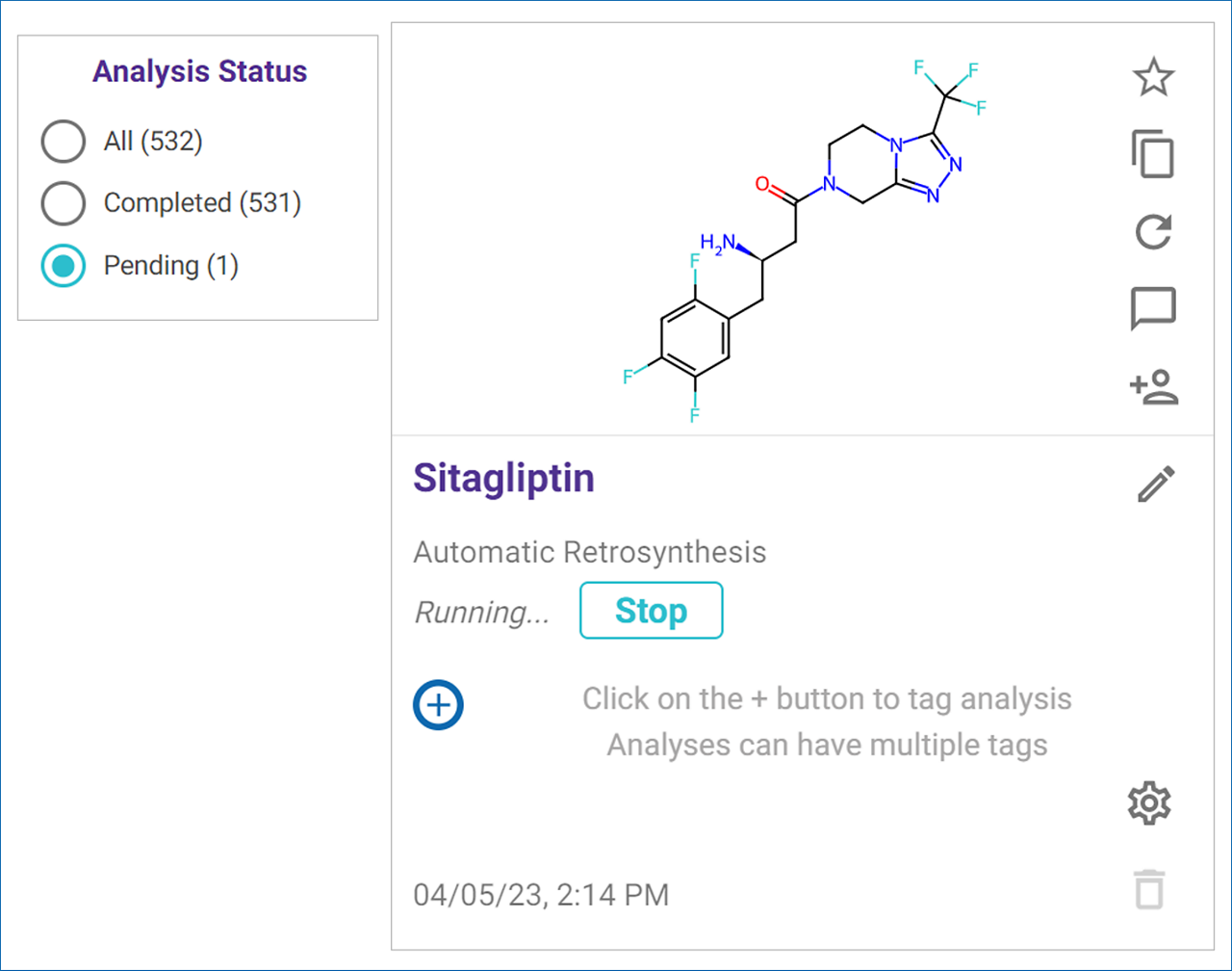 As soon as SYNTHIA™ identifies results, they will automatically load for analysis. If no results are available yet, you can easily check the status of your search by clicking on the Computations Tab