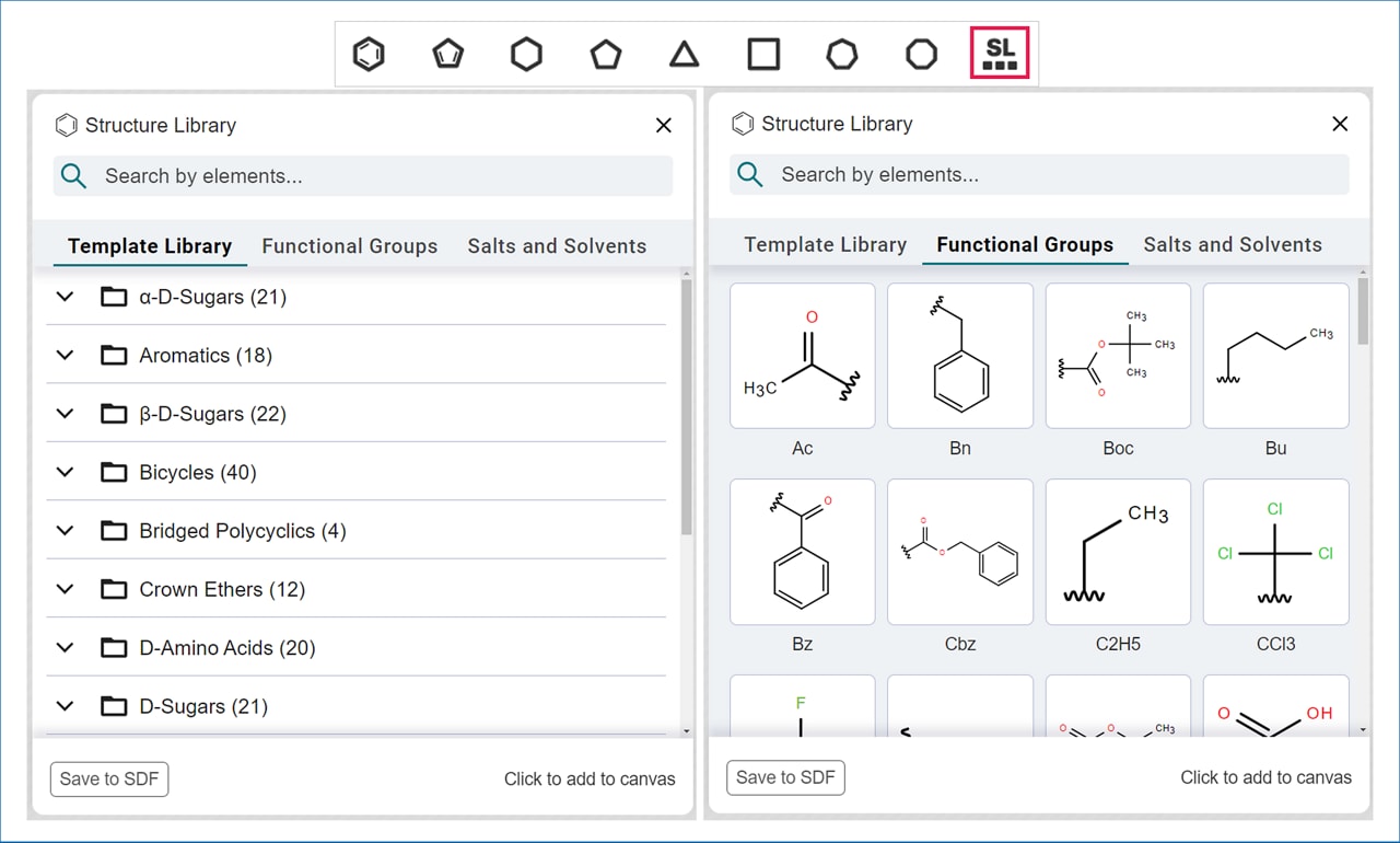 Our Molecule Editor, Ketcher, allows you to quickly draw structures using bond and atom tools.