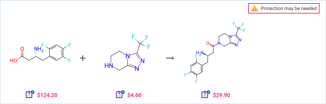 When reviewing your results, keep an eye out for a Shield tag next to a molecule. This indicates that a protecting group is needed at that step.