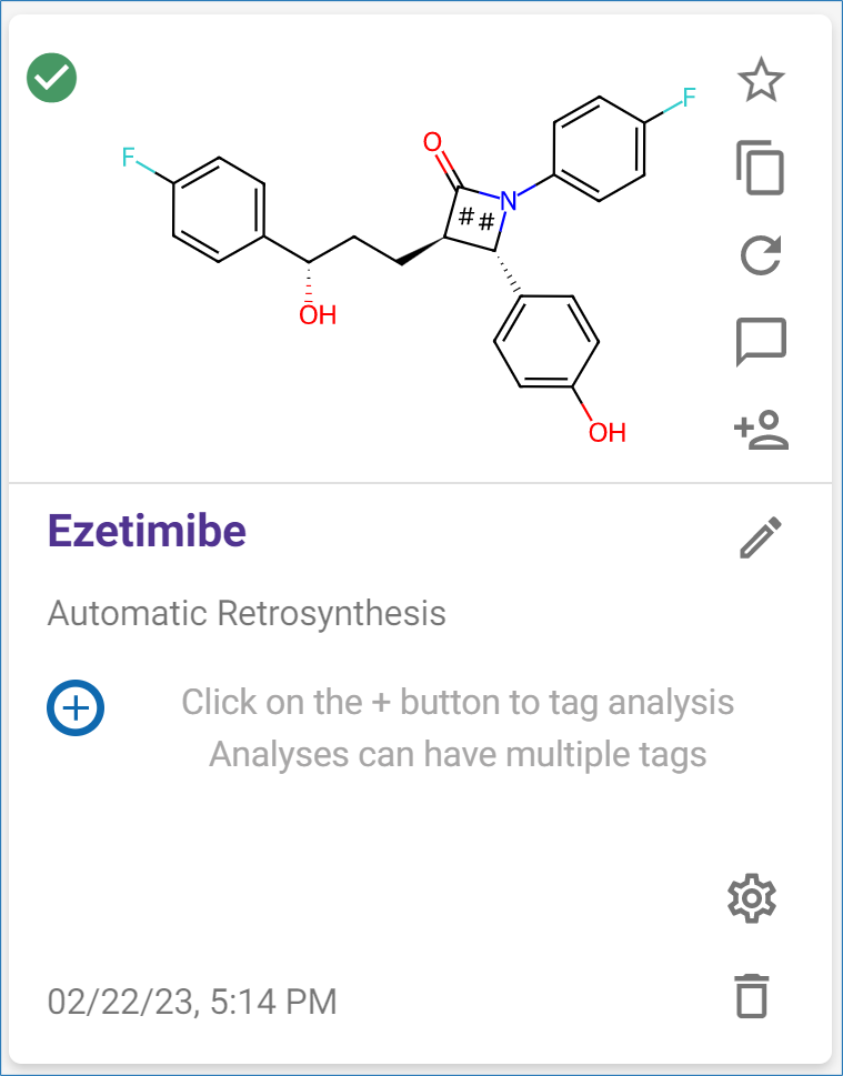 Note: You may want to increase the number of iterations for your analysis. This will give SYNTHIA™ a chance to explore more options to make the bonds defined as ‘Reaction Center’, 2000 to 5000 iterations for a simple molecule, 10000 iterations for a complex molecule, with stereocenters or complex ring systems. You can always stop the analysis when you are satisfied with the suggested results.