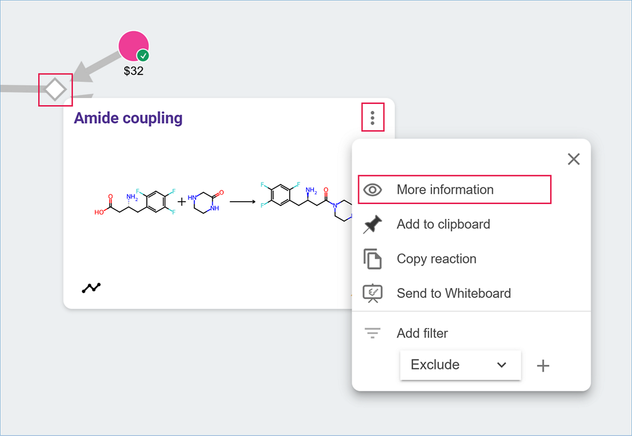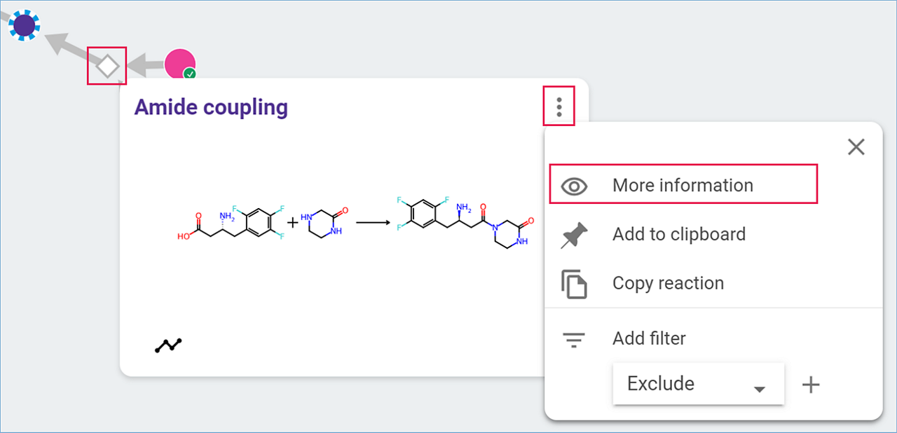 To access detailed reaction information, select ‘More Information’ to open the Reaction Card.