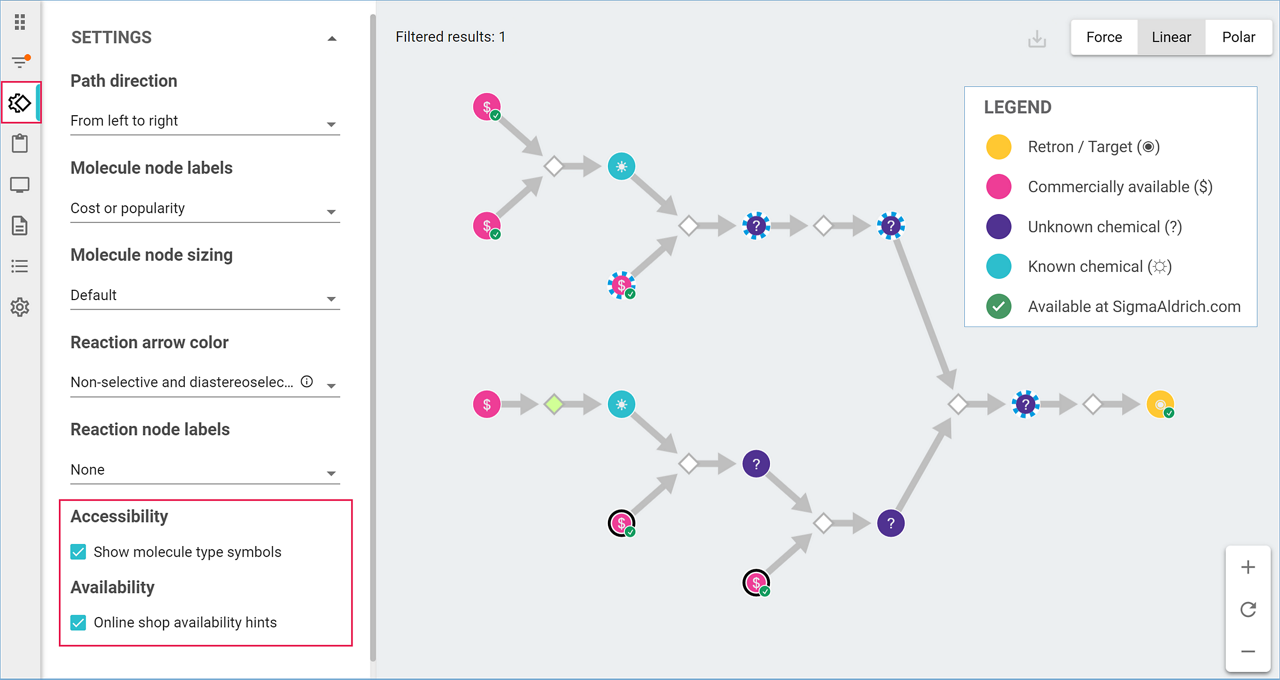 Availability icons label molecules that are commercially available on SigmaAldrich.com