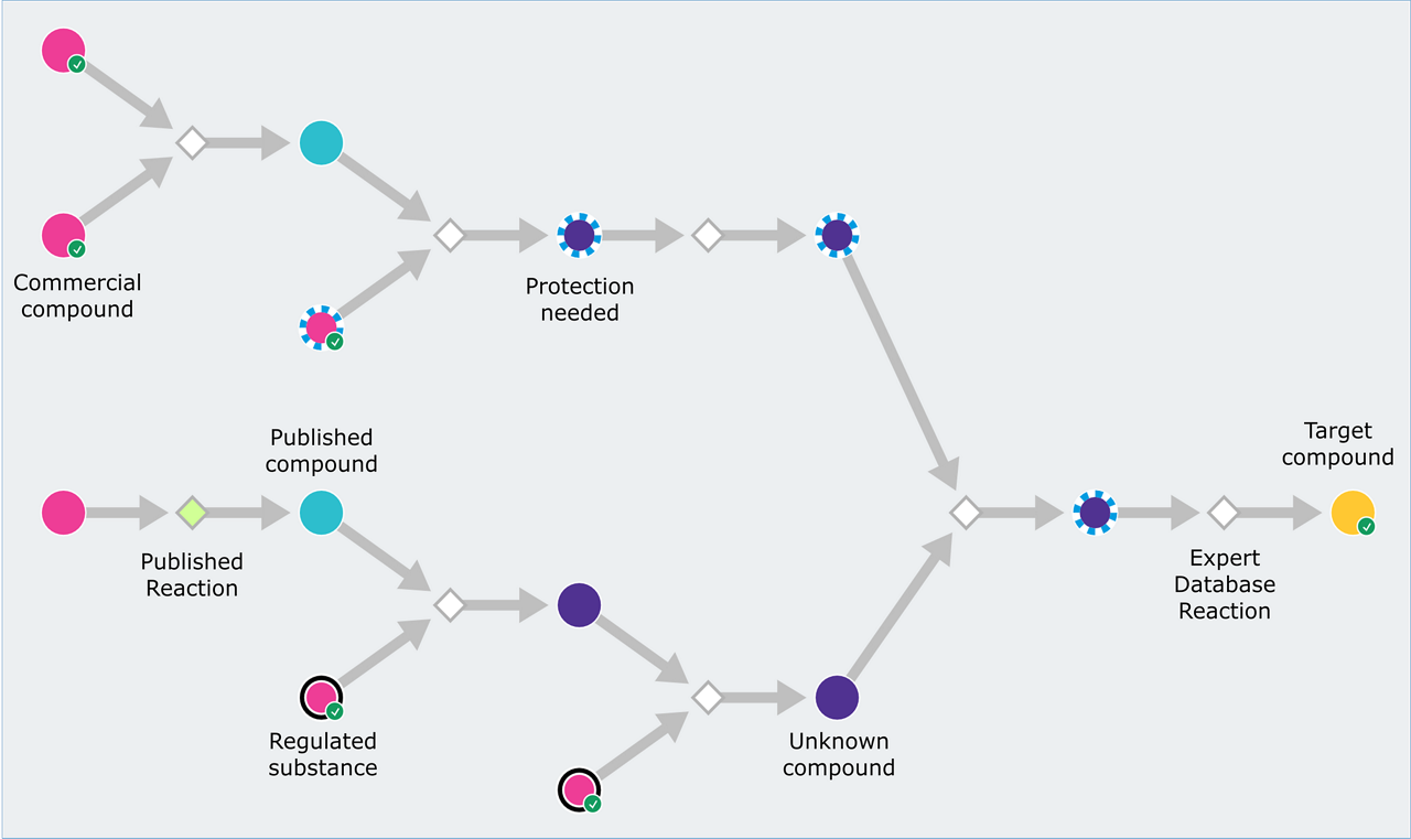 Accessibility icons label target, commercial, published, and unknown compounds for increased visibility.