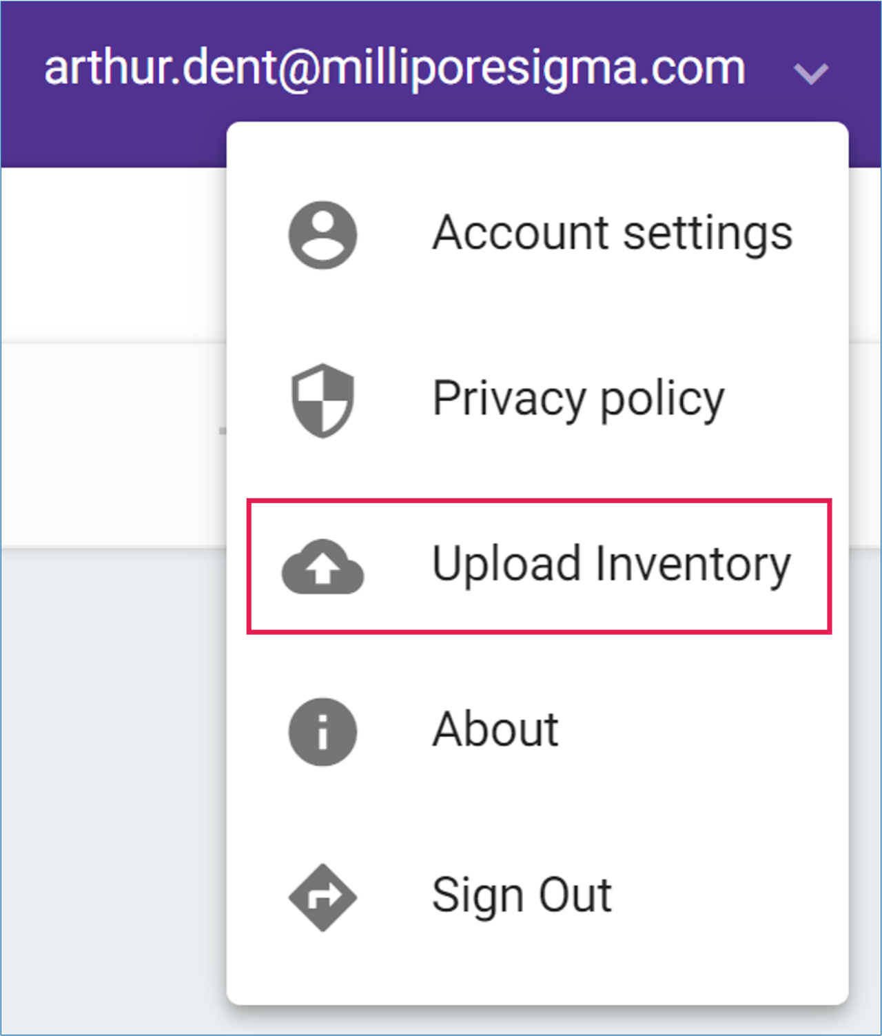- Click on your username to open the settings menu, and select ‘Upload Inventory’