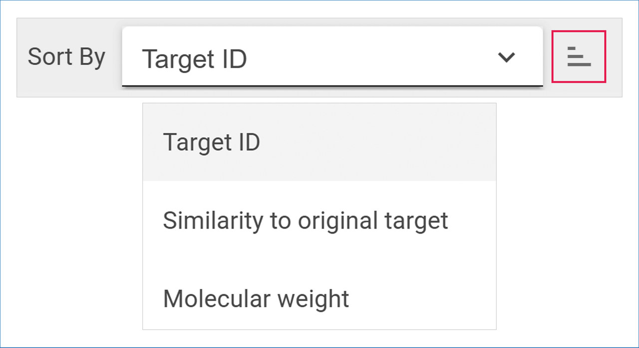 Use the Sort By menu to select one of the following options to sort your target molecules: