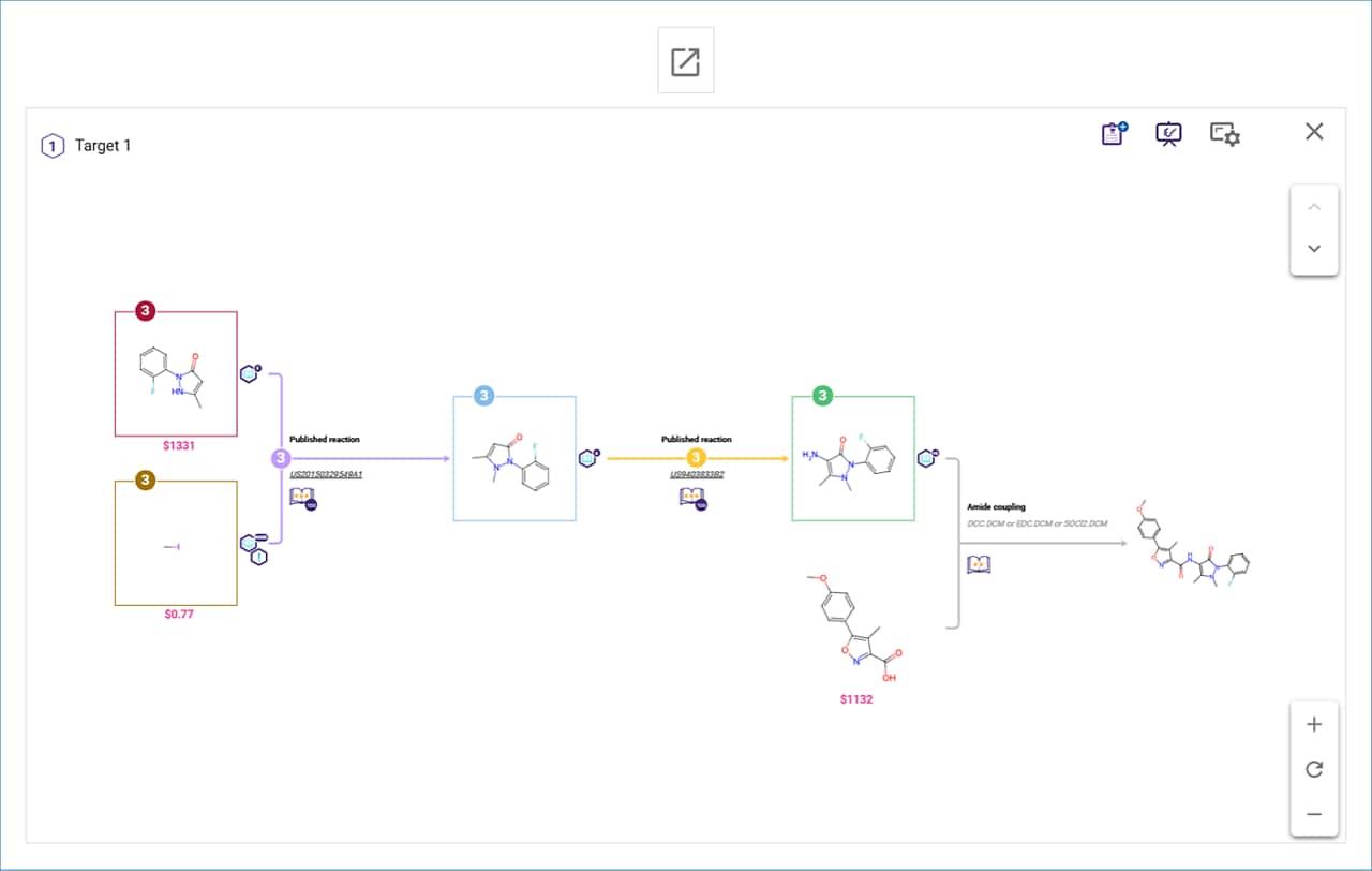 The path rank for each target molecule is displayed in the upper left corner of the screen. On the upper right side, you will find the ‘Shop Now’ and ‘Pathway Options’ icons.