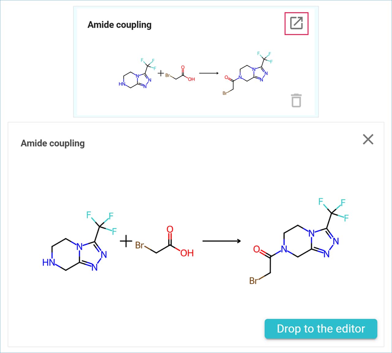 You can continue adding elements or create new ones by drawing molecules, adding text, or inserting images using the tools available in the Molecule Editor. Use the Molecule Editor Selection tools to move elements and arrange them as needed.