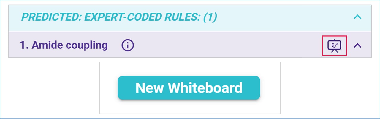 To add a molecule, open a Molecule Card in any type of analysis. At the top right of the card, click on the Whiteboard icon.