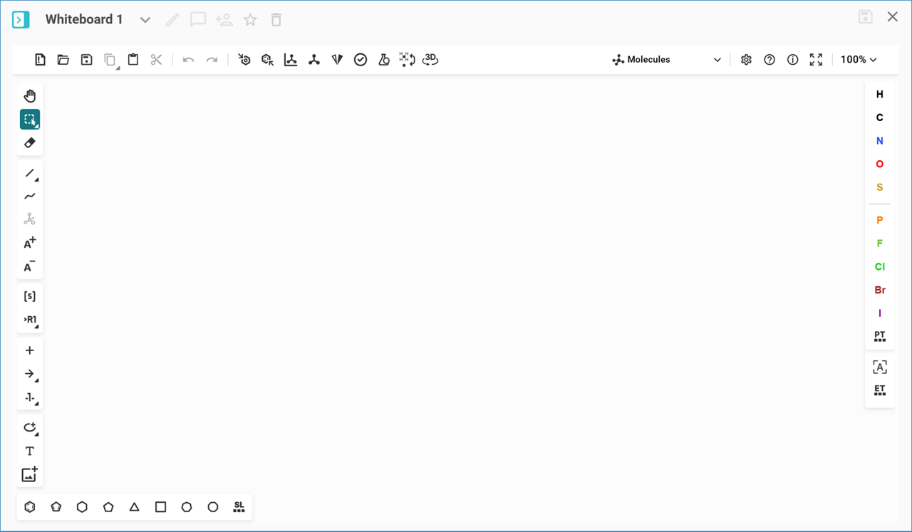 This will open a new Whiteboard workspace, where you can begin drawing molecules and reactions using the integrated molecule editor or import elements directly from your analysis results.