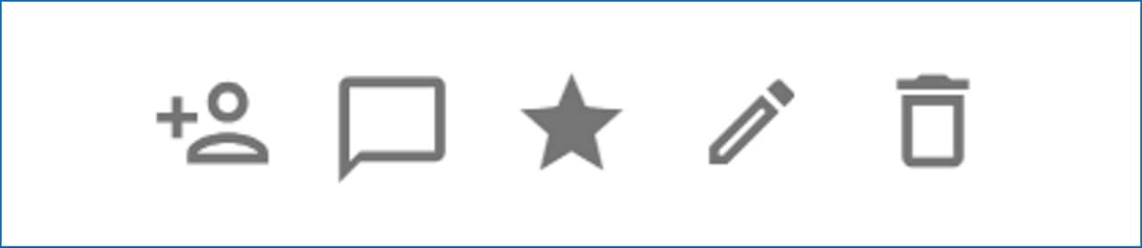Each whiteboard tile displays a series of icon on its right side. Hover over any icon to see a description. Starting from the upper right, and going downward, an explanation of each whiteboard action is described below.